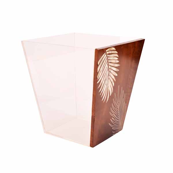 / سلة مهملات خشب مع أكرليك مصدفة